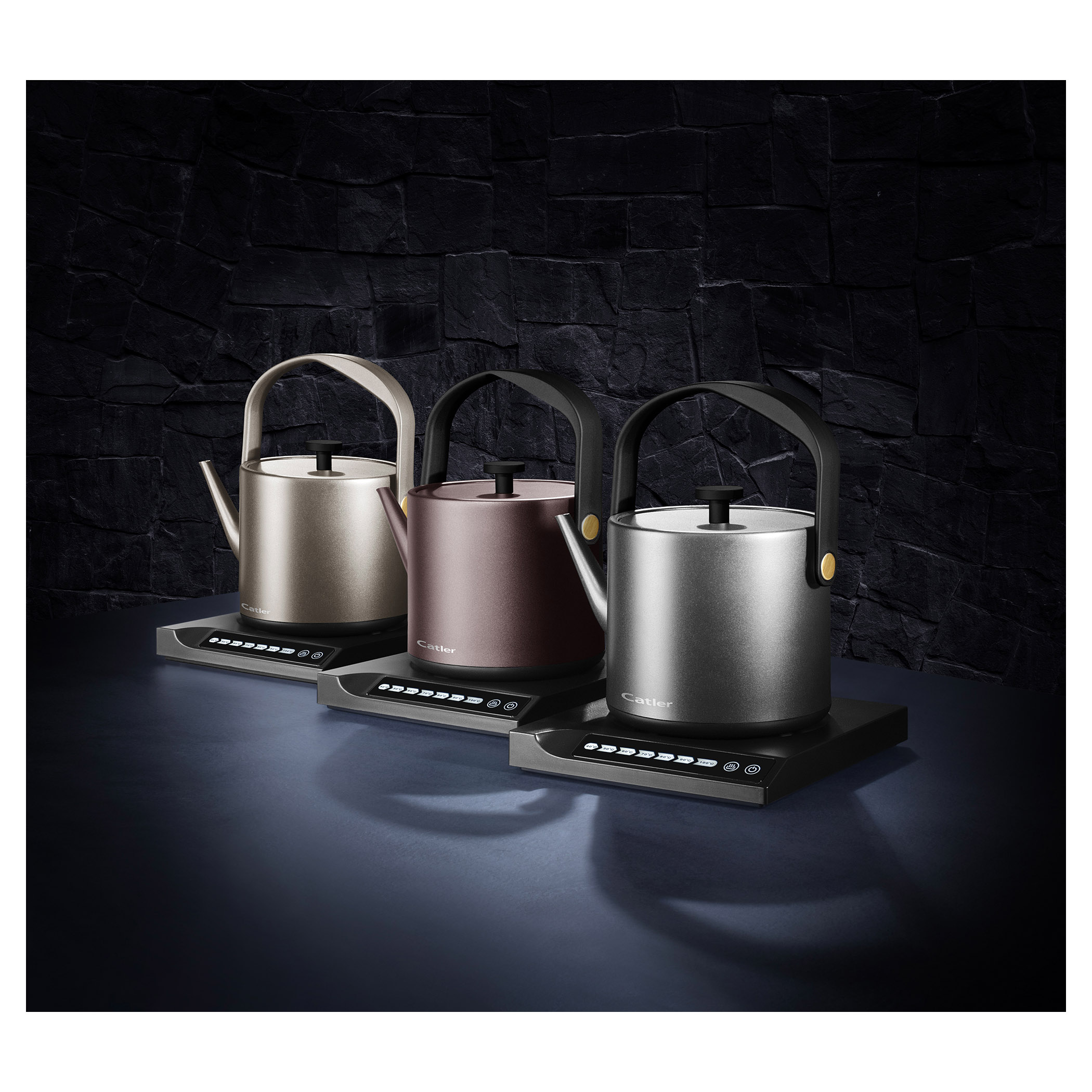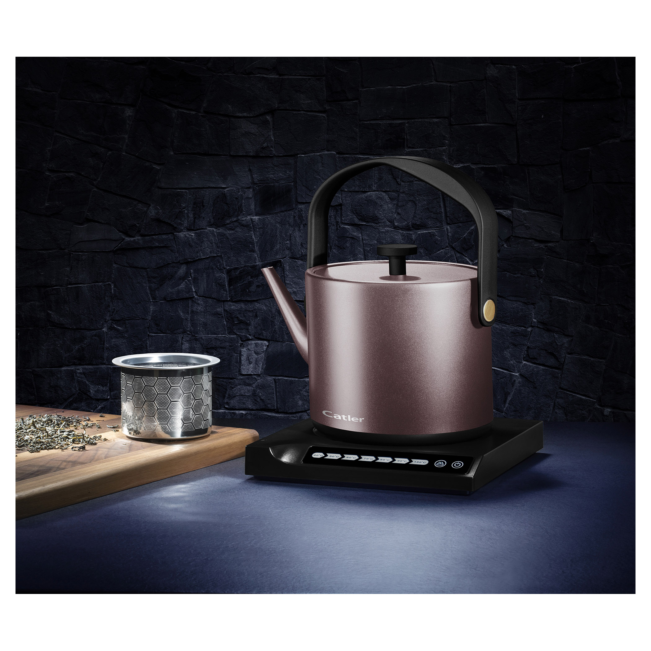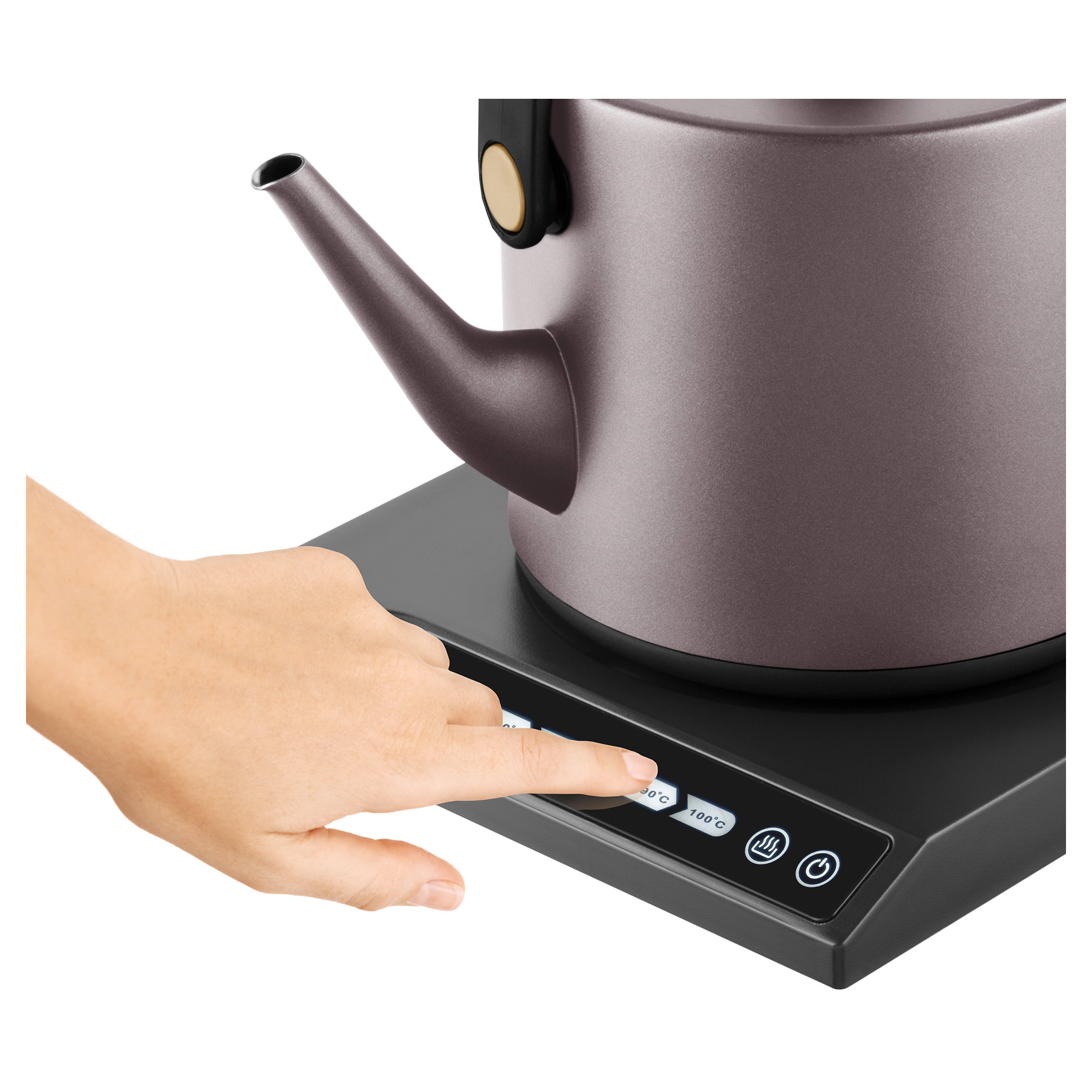 Elektrická varná kanvica s reguláciou teploty a dotykovým ovládacím panelom.