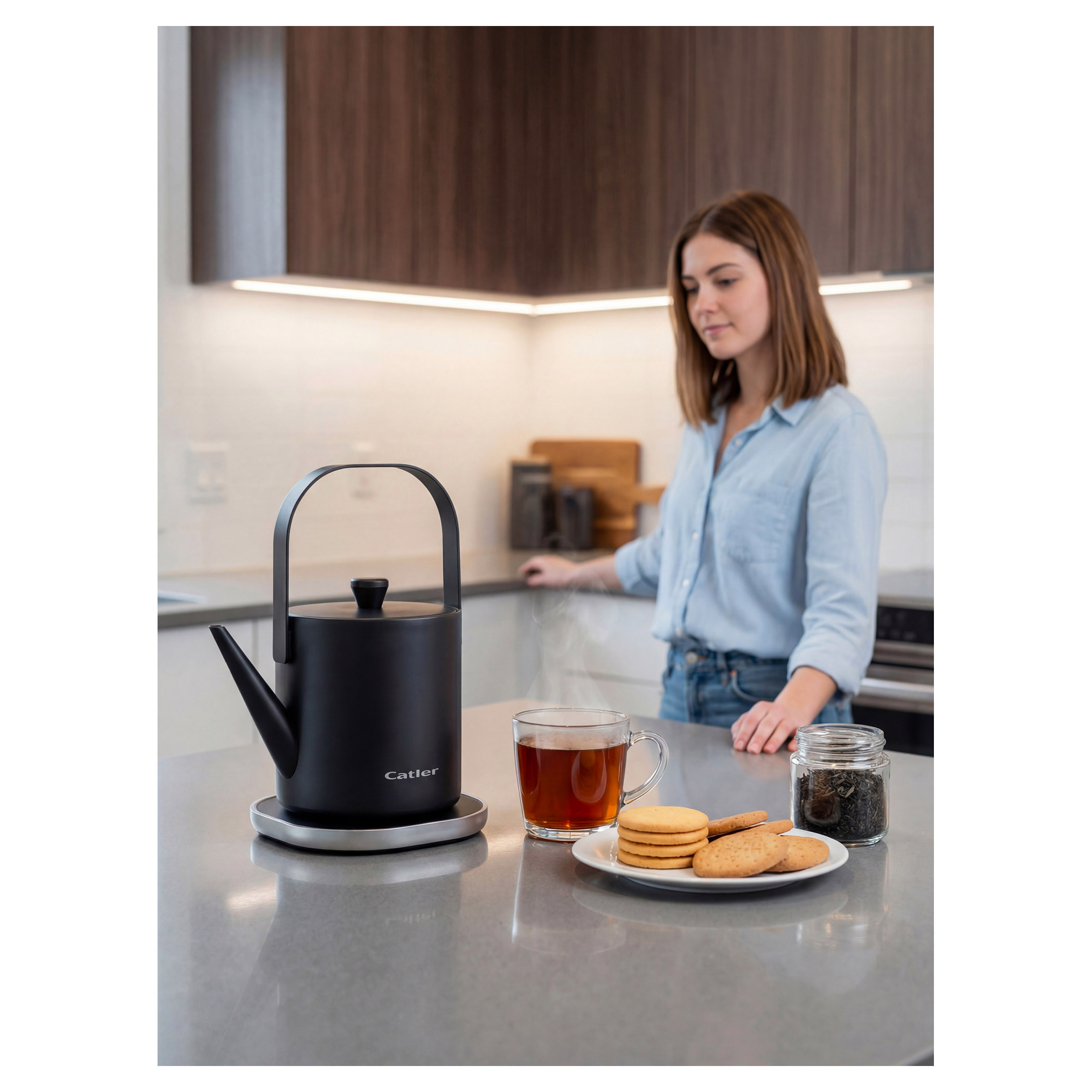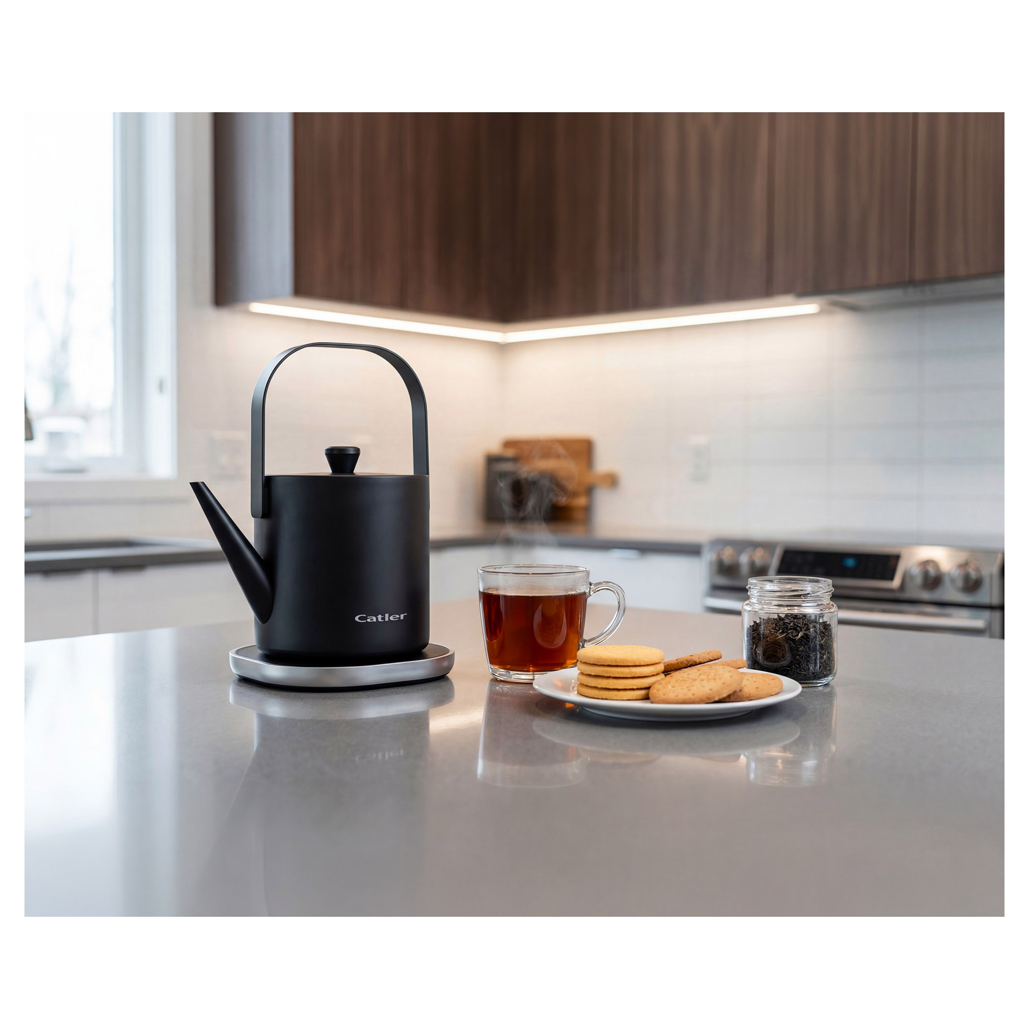 Rýchlovarná kanvica Catler KE 421 v zlatom prevedení vám nielen rýchlo ohreje vodu, ale z prípravy čaju vykúzli milovaný rituál. Poteší vás funkčnými detailmi, ako napr. madlom, ktoré zároveň slúži ako spínač ohrevu.